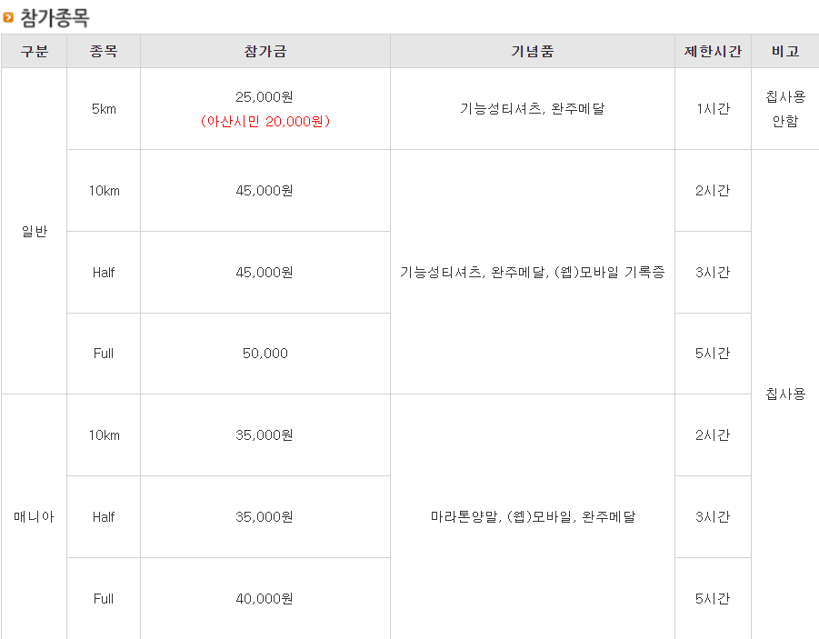 - 참가비용 : 5km(2만원), 10km/하프코스(3만원)