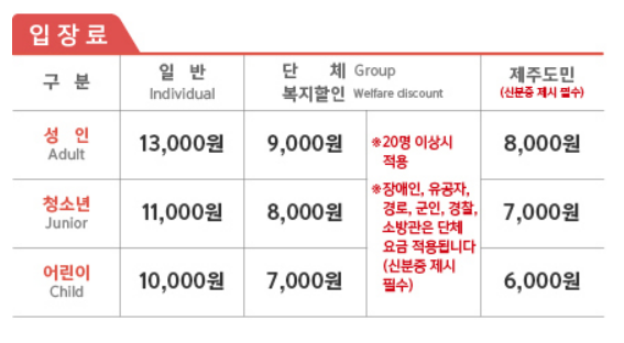 * 제주특별자치도민, 장애인, 유공자, 군인, 경찰, 소방관은 반드시 신분증 및 증명서 제시 필수