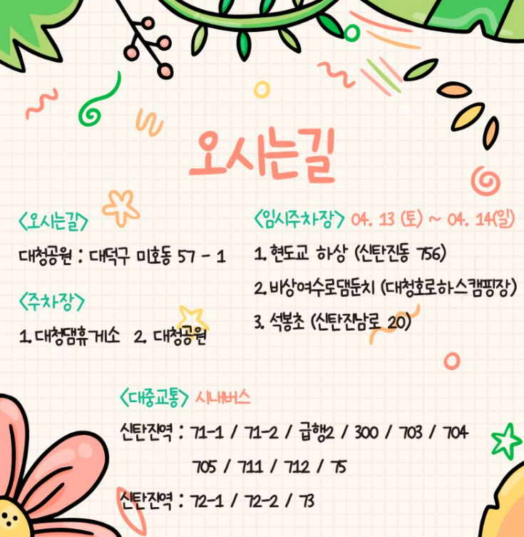 아울러 임시주차장은 4월 13일과 14일 양일간만 운영하니 참고하시기 바랍니다!!
