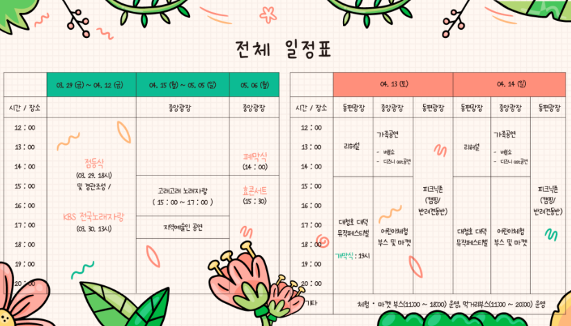 4월 ~5월 봄 행사로는 제격이니 고민하지 마시고 참석하셔서 즐거운 추억 만드시기 바랍니다. 특히나 4월 13일과 14일