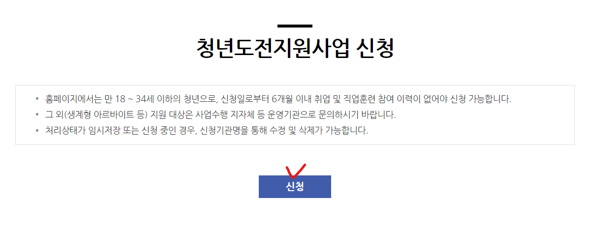 위 청년도전 지원사업이 올해 2월부터 72개의 지자체에서 시행이 되었습니다. 전국적으로 시행이 될 예정이며 나라에서 청년들을 위해서 특별히 마련한 정책이니 대상이신 분들은 서둘러 신청하여 배제되는 일이 없도록 해야겠습니다!