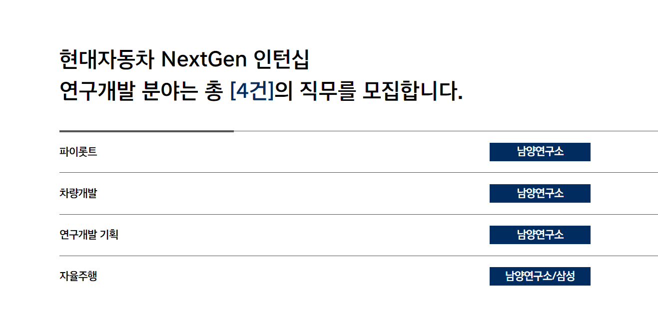 위의 "신입채용 바로가기" 버튼을 누르면 현대자동차 신입채용과 관련된 모집분야를 모두 보실 수 있으니 꼭 눌러서 확인 후 채용에 한 걸음 더 다가가시기 바랍니다.